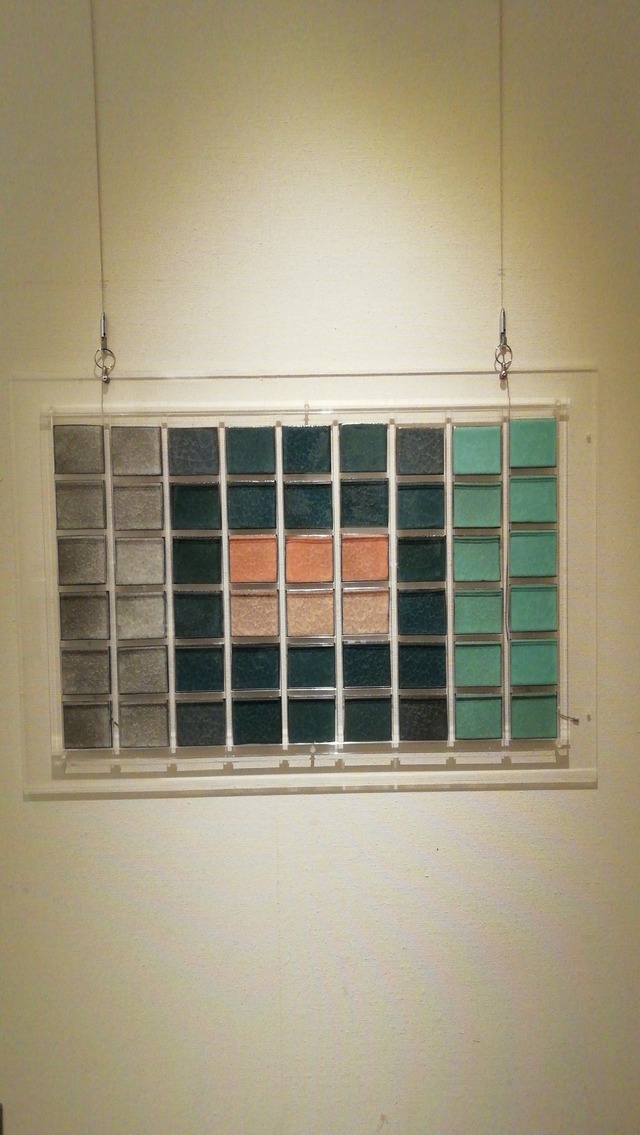 薔薇貫入のタイルがはめてあります。 タイルは自由に動かせます。 65×95.5 cm 重量あり。