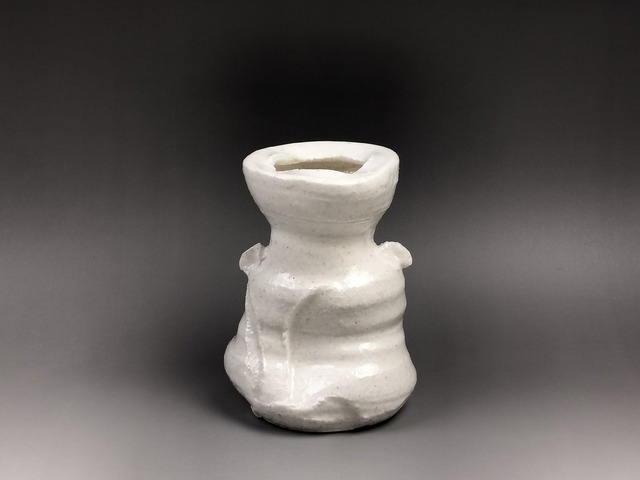 粗白磁 花入 耳付き 直径9×9(最大)㎝ 高さ13㎝