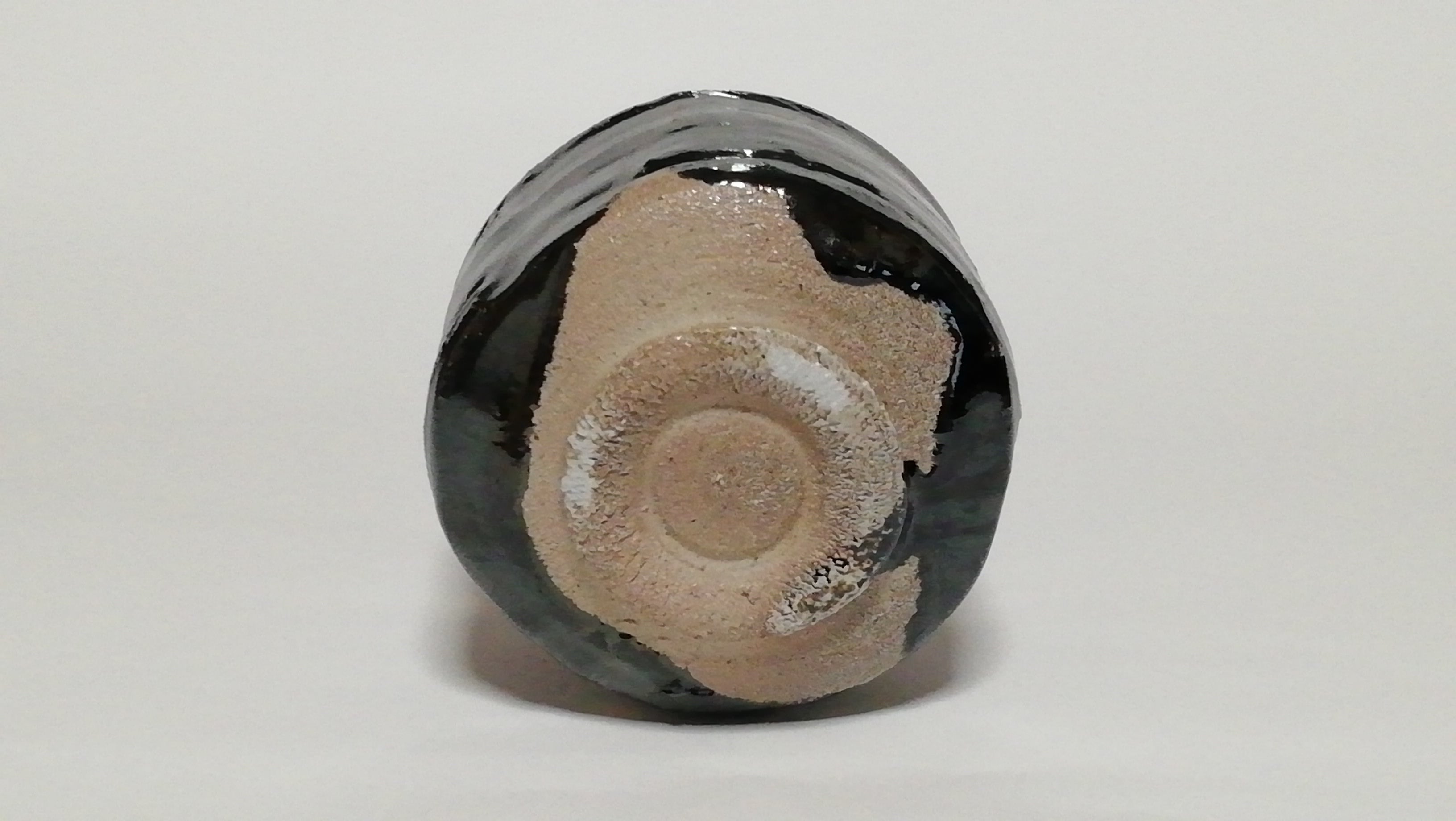 焼成中に窯から引き出し急冷させることにより、漆黒の茶碗になりました。